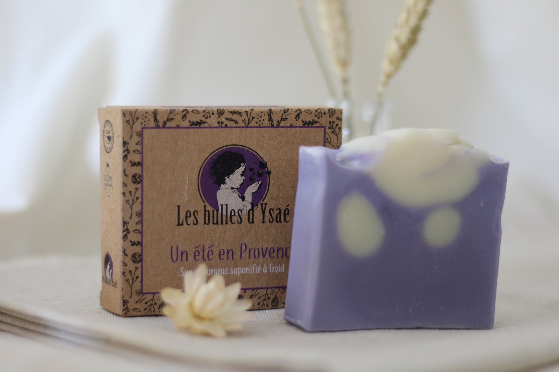 Tous les savons Les bulles d’Ysaé sont à base d’ingrédients végétaux 100% issus de l’agriculture biologique, colorés d’argiles et d’ocres et parfumés aux huiles essentielles biologiques. Ils sont saponifiés à froid, artisanaux, 100% biodégradables et fabriqués au cœur du village de la Gaude sur la Côte d’Azur. Pour plus d'informations : https://www.lesbullesdysae.com