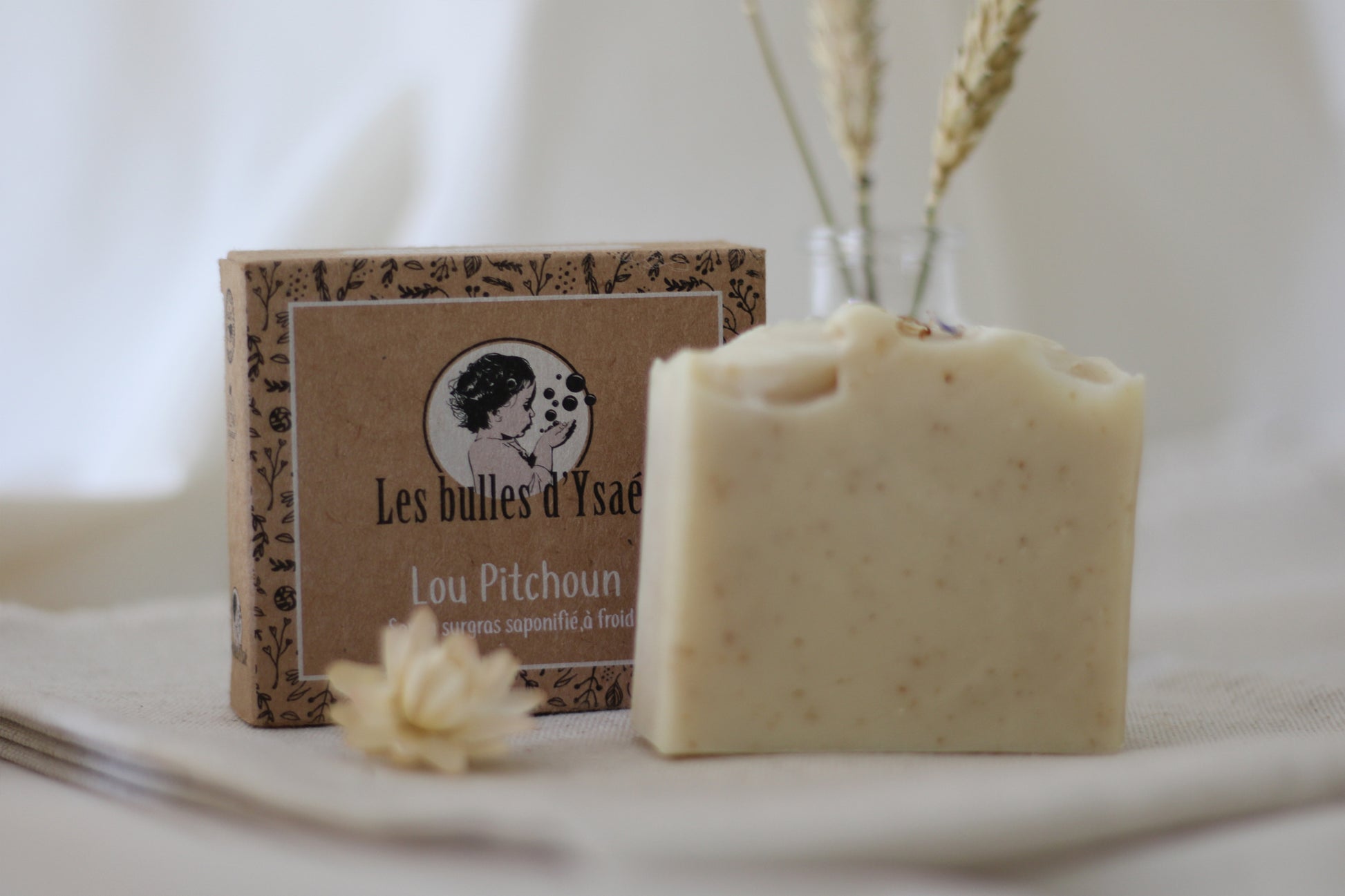 Vous y trouverez un savon artisanal Lou Pithcoun, idéal pour les peaux délicates, à base d’huile d’amande douce et enrichi de calendula et de lait d’avoine.